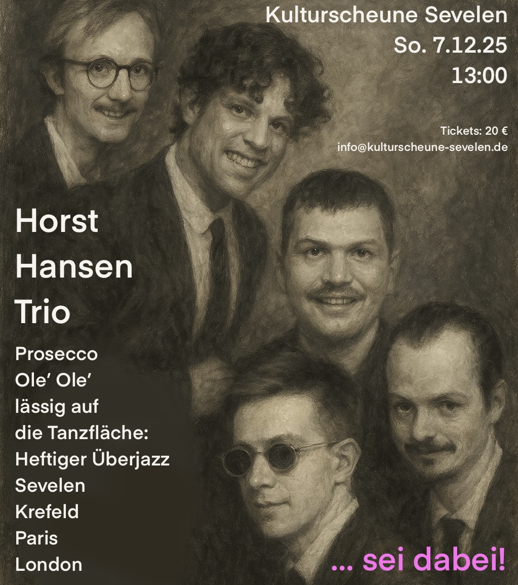 Musikalische Rausschmiss-Party mit dem HORST HANSEN TRIO als die Ikone des heftigen Überjazz in der Rolle des niederrheinisches Abrisskommandos: