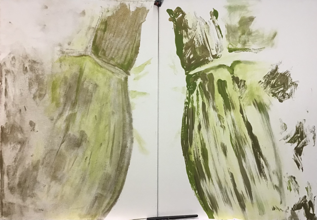 (Monotypie auf Leinwand, je 50 x 70 cm, 2023, SERIE – VERSCHWINDEN… der Laufkäfer: Rückgang in NRW 68%)